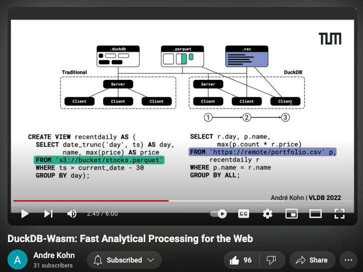 DuckDB WASM browser client remote join 2 heterogenous table files from S3.
